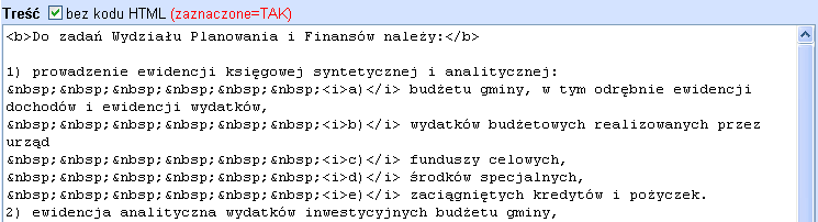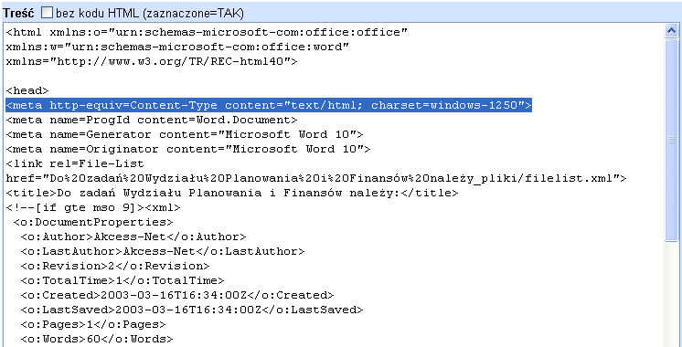 (okienko "Treść bez kodu HTML" musi być
